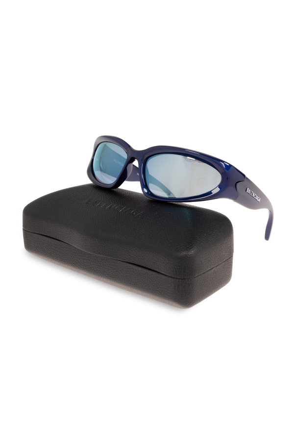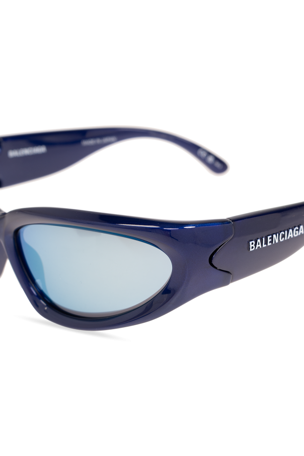 Dark blue ‘Swift‘ sunglasses from Balenciaga. Made from bio-nylon, this model showcases a tactile logo in white on the temples and certified blue mirror lenses with 100% UVA/UVB protection.