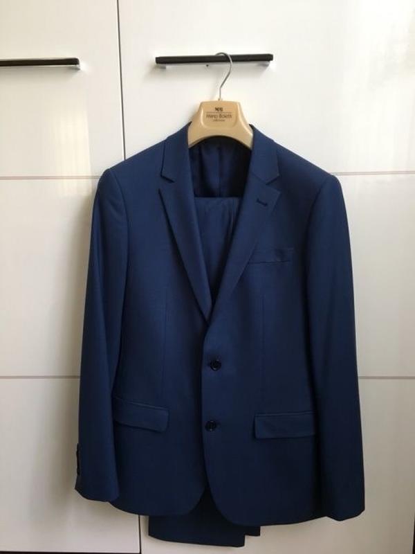 Стильный фирменный костюм итальянского производства ,в идеальном состоянии,так как одевался один раз на торжество,размер есть на фото {пиджак -Л,брюки- М}