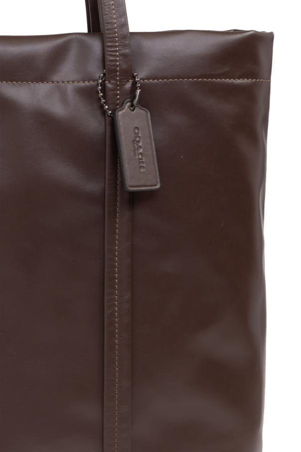 Introducing the Hall Shopper by Coach, a testament to the fusion of functionality and refined aesthetics. Crafted from 100% genuine leather in a rich, dark brown hue, this shopper bag boasts a sleek, vertical silhouette enhanced by symmetrical seams that lend a subtle structure. Its smooth texture and minimalist design are complemented by a discreet logo, a hallmark of exclusivity. The Hall Shopper features long, flat handles, ensuring comfortable shoulder wear. The interior, lined with a premium material, includes a zippered pocket adorned with the brand's name, reflecting an attention to detail and practicality. An external leather charm bearing the Coach name adds a touch of brand identity, elevating the bag’s exclusivity. Why Purchase This Product? Elegance meets practicality in a design ideal for the modern individual. Constructed from high-quality genuine leather, promising durability. Designed with an internal zippered pocket for secure storage. Features subtle, exclusive branding elements for a touch of luxury.