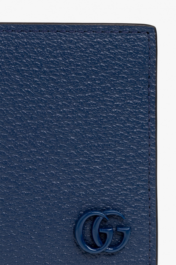 Navy blue bi-fold wallet from Gucci. Made from leather, this design showcases a logo application and two bill compartments, two slip pockets and eight card slots inside.