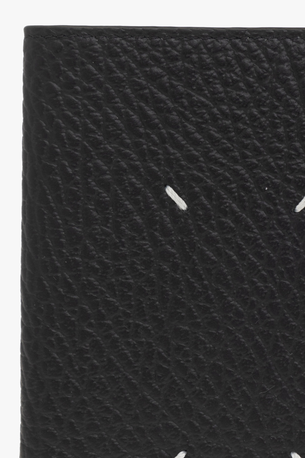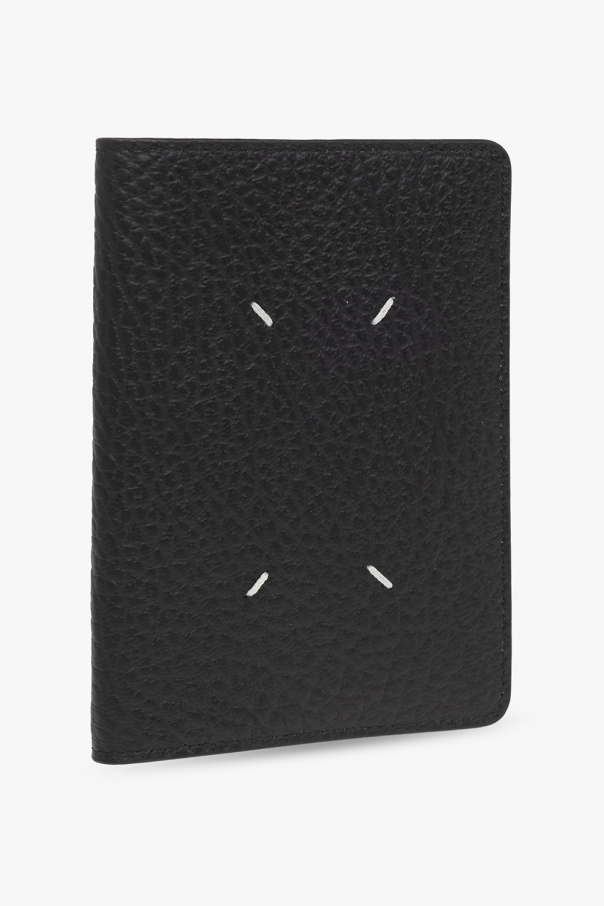 Black passport holder from Maison Margiela. Made of grained calf leather, this item features a white logo embroidery and internal passport compartment.
