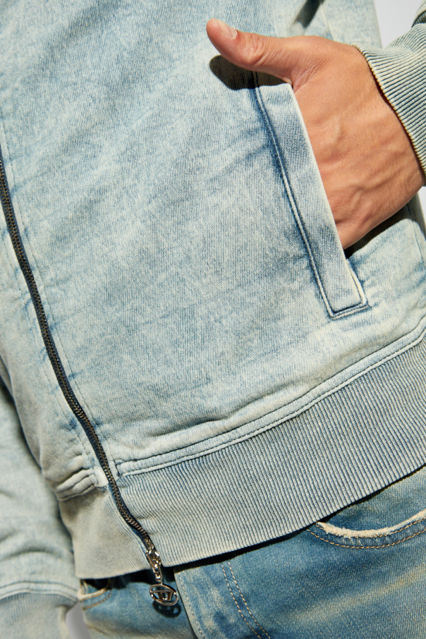 Introducing the D-BUZEE denim jacket by Diesel, a sartorial embodiment of casual elegance and contemporary design. Crafted from a premium blend of 98% cotton and 2% elastane, this jacket offers both comfort and a slight stretch, accommodating movement while maintaining its shape. The palette of variegated blue shades harmonizes with the washed-out denim effect, creating a piece that is as versatile as it is stylish. The D-BUZEE jacket features a round neckline, a distinctive choice that sets it apart in the realm of denim wear. Its visible metal zipper, capped with a branded pull, introduces a contrast with the lighter denim, hinting at the jacket's exclusive lineage. The elasticized hem and cuffs accentuate its sporty flair, making it a perfect complement to a dynamic lifestyle. A subtle yet unmistakable mark of distinction is found on the left sleeve—a colorful detail that speaks to the Diesel brand's renown. Moreover, practicality is woven into its design with two strategically placed side pockets, blending functionality with fashion. Why Purchase This Product? Exclusive Design: A unique round neckline and brand-specific zipped closure set this jacket apart. High-Quality Materials: Made from a premium cotton blend, ensuring durability and comfort. Versatile Style: The varied shades of blue and washed denim effect make it a fashionable choice for any occasion. Detail-Oriented: Branded zipper pull and a distinctive logo detail on the sleeve underscore the exclusive nature of the garment.