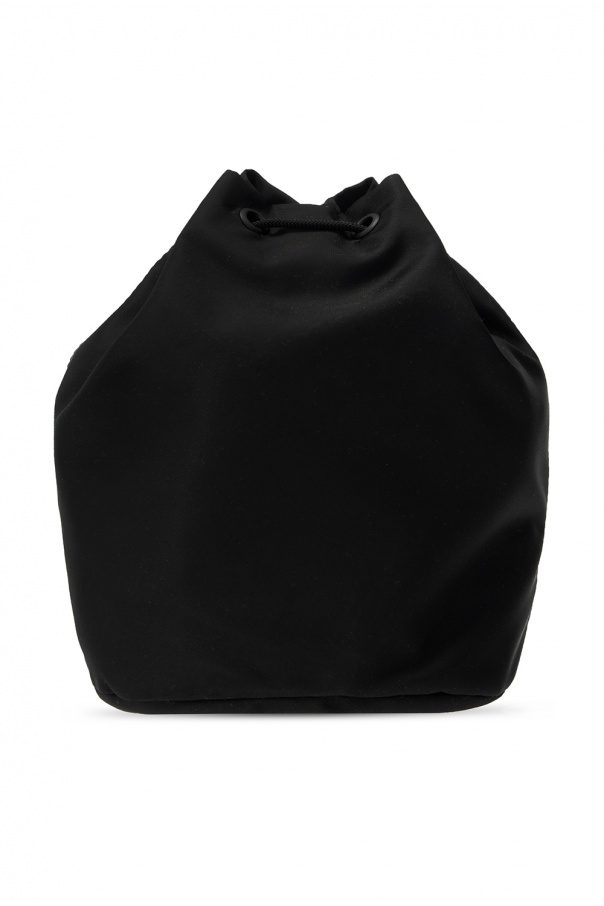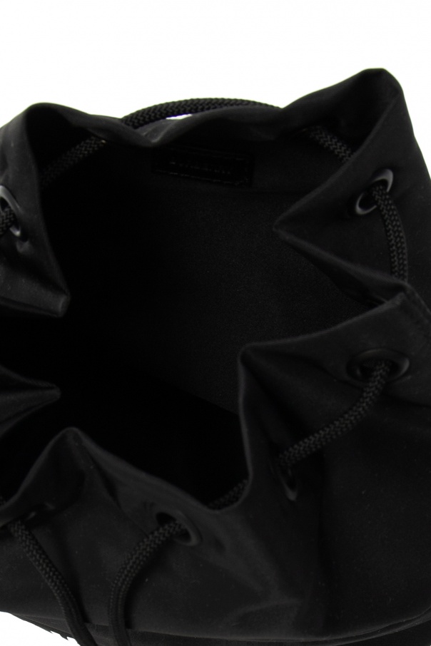 Black bucket bag from Burberry. Printed with the brand's logo in white, this design features drawcord fastening, an external zipped pocket on the front and interior with one compartment.