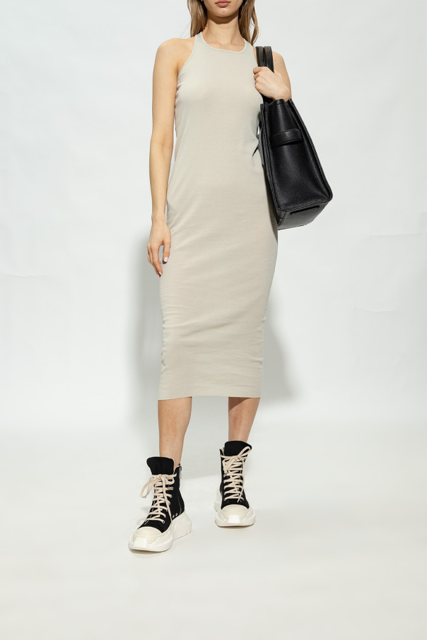 Black high-top sneakers from Rick Owens DRKSHDW. Crafted from cotton canvas, this lace-up pair features a side zip, logo embroidery and chunky sole in white rubber.