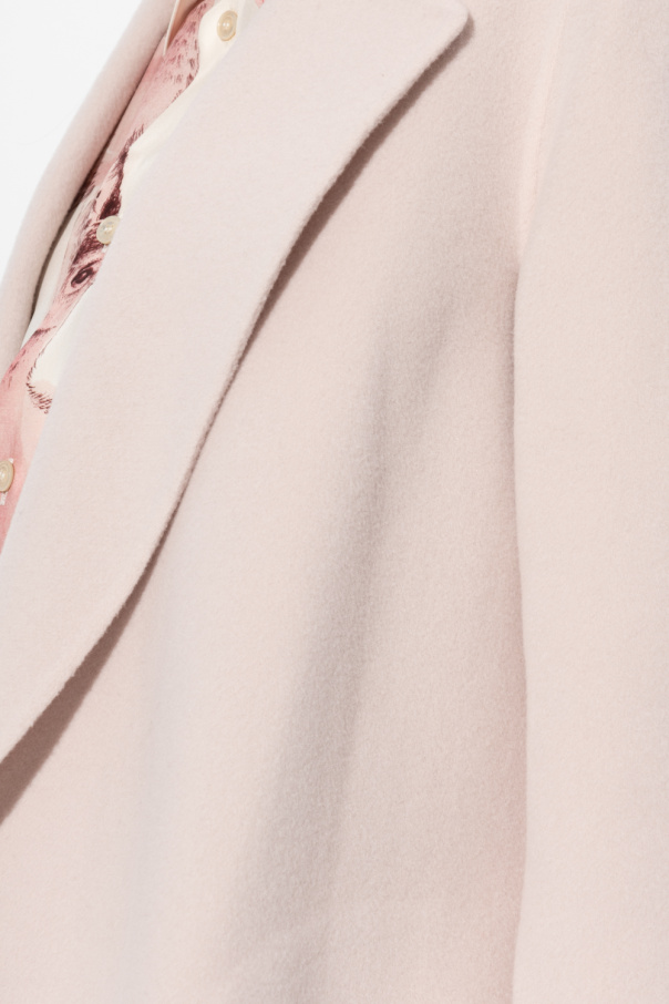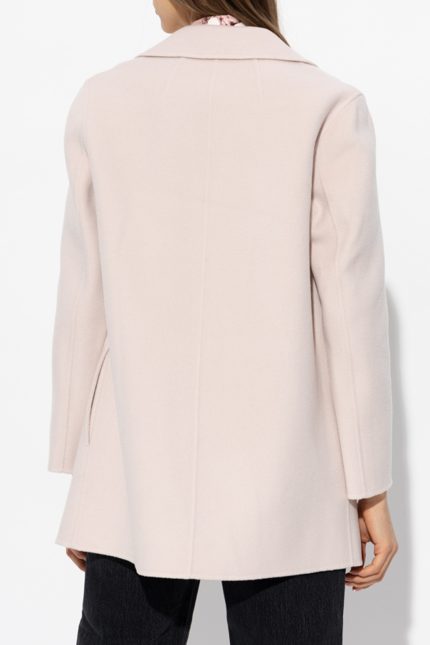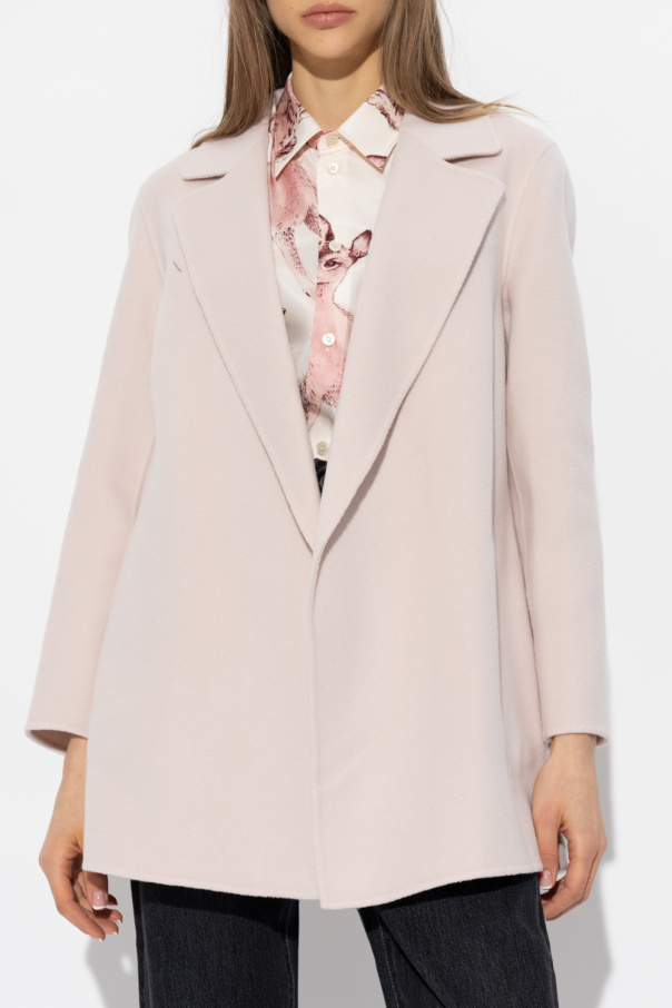 Short, light pink coat from Theory. Made of a wool and cashmere blend, this design features two slip pockets, notch lapels and long sleeves.