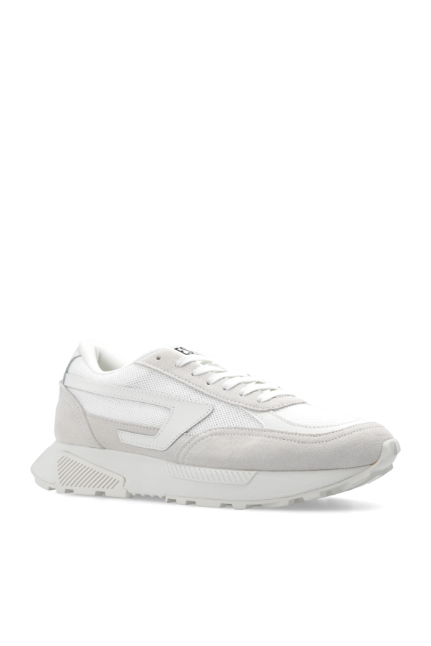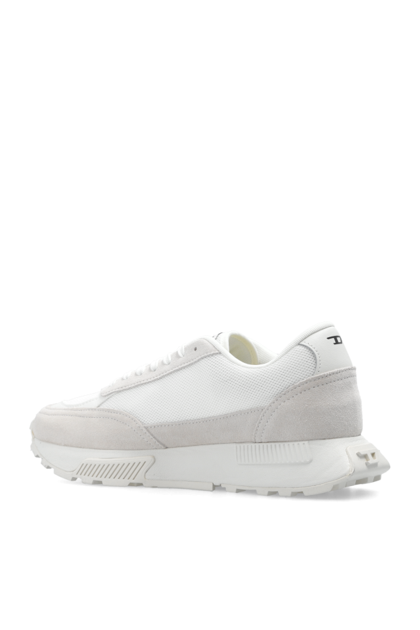 Light grey and white ‘S-TYCHE D’ sneakers from Diesel. Made of suede, smooth leather and fabric, this lace-up pair sits on a light grey rubber sole and showcases the brand’s logo.