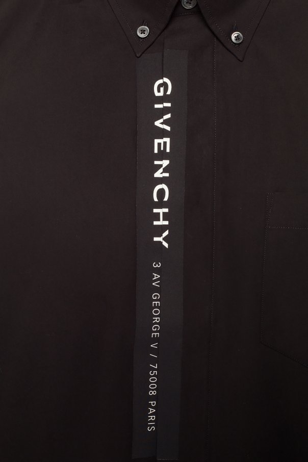 Black shirt from Givenchy. Made of cotton. Fastened via buttons. Features long sleeves with buttoned cuffs as well as chest pocket and printed white logo on the front.