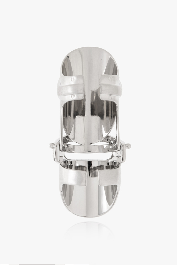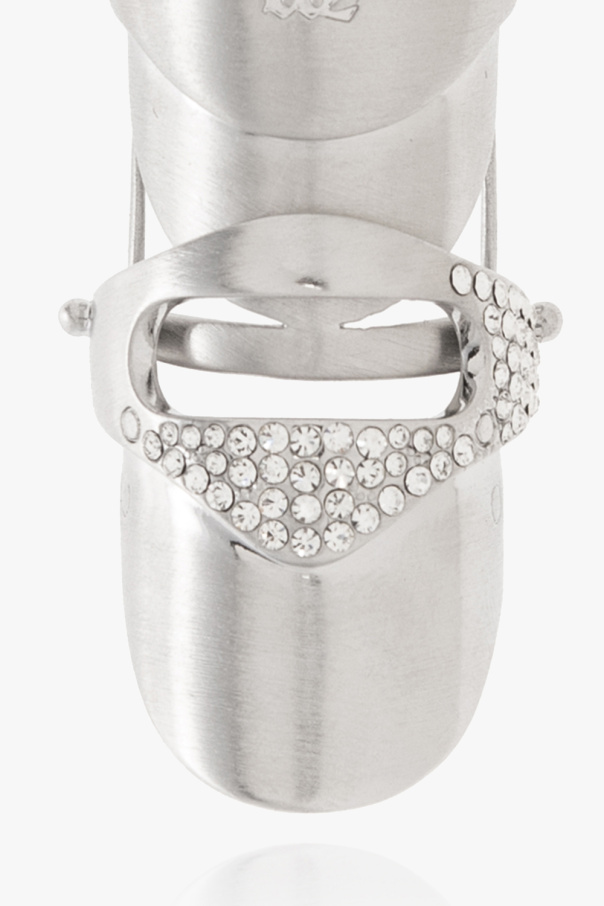 Silver-tone ring from MISBHV. Made of brass with faux rhodium plating, this item is engraved with a logo and embellished with crystals.