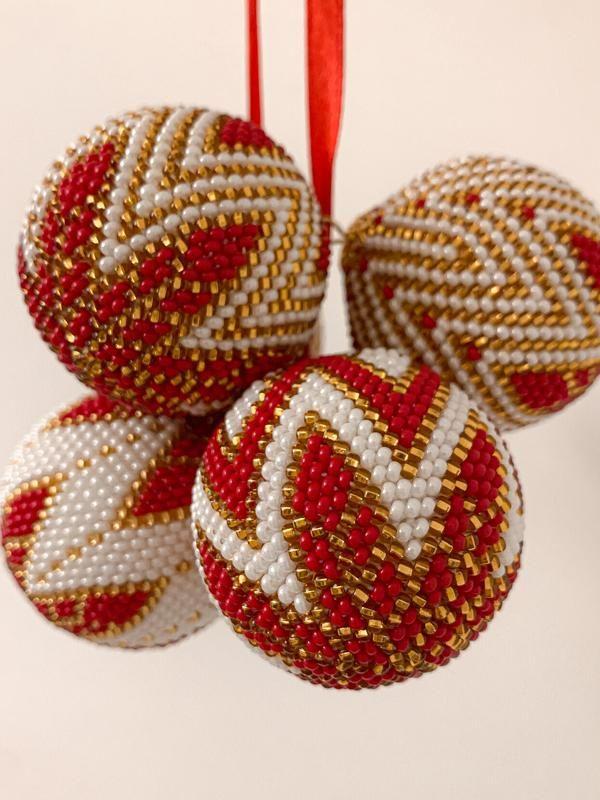 Новорічна іграшка на ялинку ручної роботи. Виконана з якісного чеського бісеру. Діаметр основи 4 см.