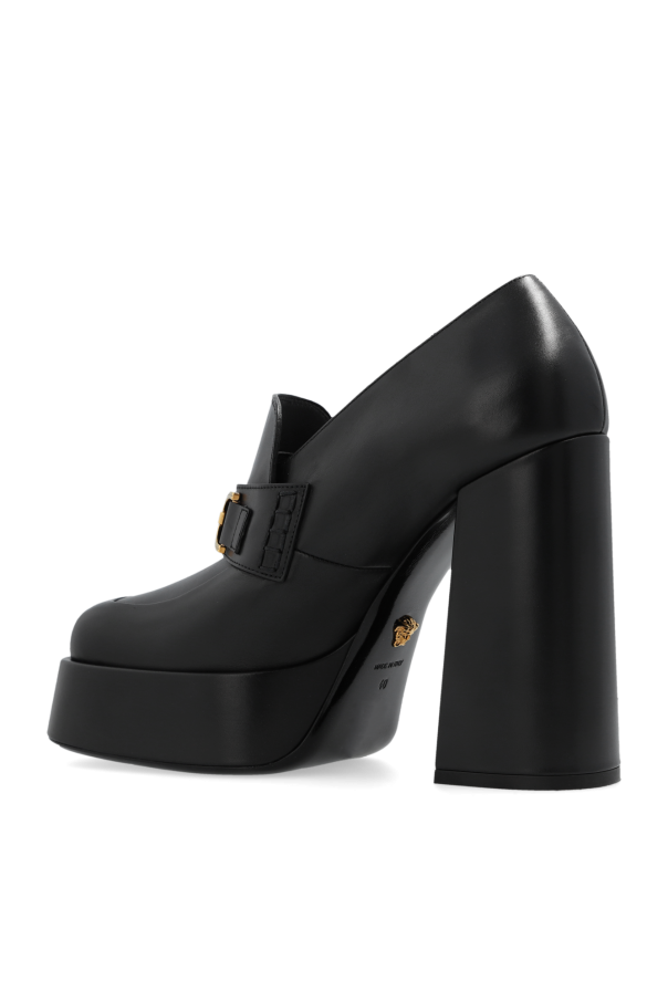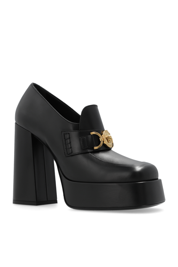 Black ‘Medusa '95’ platform pumps from Versace. Made of leather, this design rests on a black leather sole and is decorated with a gold-tone detail with the iconic Medusa head embellished with crystals.