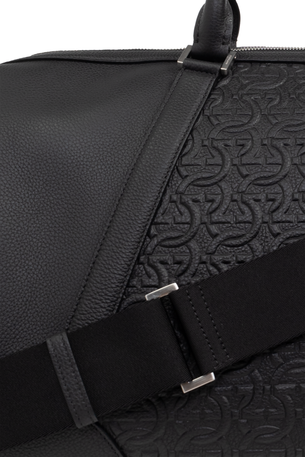Introducing the exquisite FERRAGAMO Handheld Bag, a paragon of minimalist elegance and functionality. Crafted from a luxurious blend of calfskin leather and premium materials, this piece stands out as a hallmark of the esteemed FERRAGAMO collection. The bag's rectangular silhouette with subtly rounded corners exudes a modern, sophisticated charm. Its surface, adorned with a distinctive, embossed pattern specific to the FERRAGAMO brand, adds a layer of depth and texture, making it unmistakably unique. The matte finish with a slight sheen further underscores its high-quality craftsmanship. Designed for versatility, it comes equipped with sturdy handles and a detachable, adjustable shoulder strap featuring silver or nickel-finish metal elements that beautifully contrast the bag's black hue. These metal details may also bear the designer's logo, adding a touch of luxury. The bag's functionality is enhanced by a secure zipper closure for the main compartment, ensuring your belongings are safe and accessible. Attention to detail is evident in the precise and even stitching, indicative of the bag's superior construction. Whether carried by hand or over the shoulder, as demonstrated by the model's portrayal, it maintains its elegant proportions, seamlessly blending with any upscale attire. Why Purchase This Bag? Exclusive FERRAGAMO design with a unique embossed pattern. Luxurious calfskin leather construction with meticulous craftsmanship. Practical features including a detachable shoulder strap and secure zipper closures for the main compartment and an inner pocket. Elegant, versatile styling suitable for a variety of occasions.