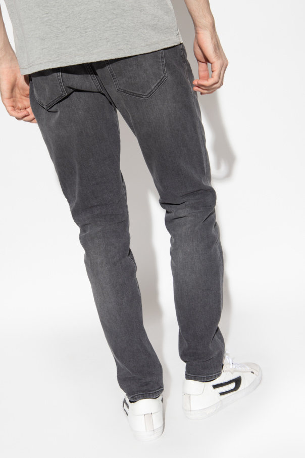 Dark grey '2019 D-STRUKT L.32' slim-fit jeans from Diesel. Falling with slightly tapered legs, this pair features a zip fly with a button, classic five pockets and a logo patch on the front.