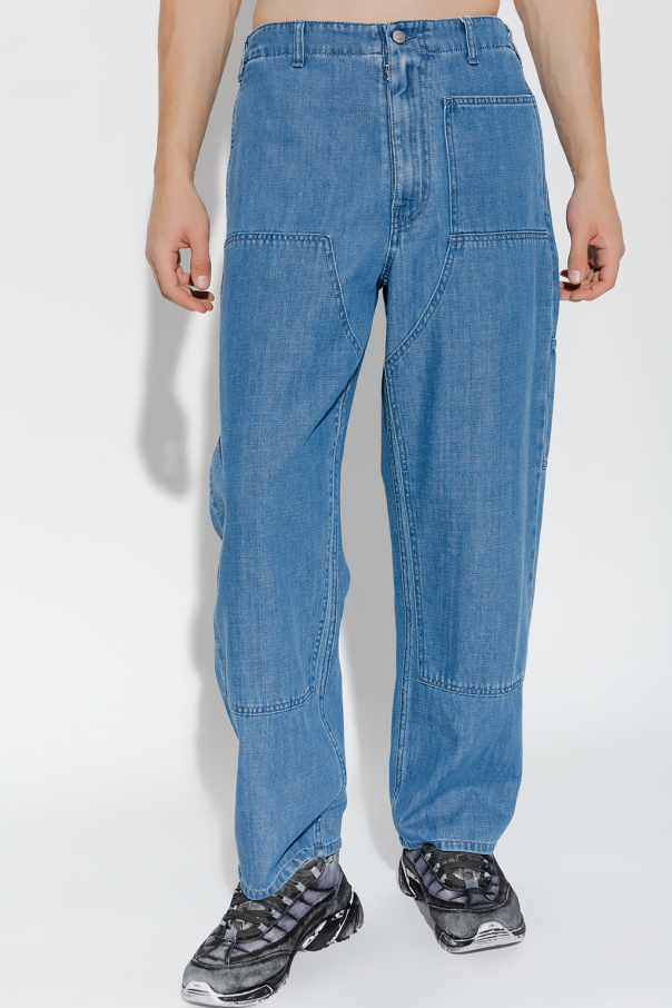 Blue jeans from MM6 Maison Margiela. Crafted with a relaxed fit, this pair features a zip fly with a button and hook, exposed stitching details and multiple pockets for added utility.