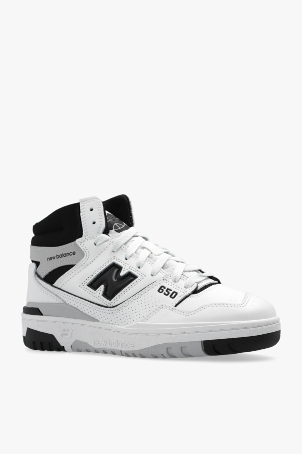 White, black and grey ‘BB650RCE’ high-top sneakers from New Balance. Made of leather and fabric, this lace-up pair features a logo detail, series number and rubber sole in white, black and grey.