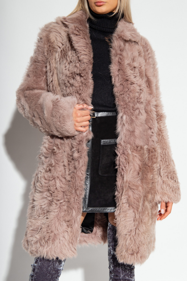 Blush pink fur jacket from Saint Laurent. Made of lamb leather, this garment features toggle loop fastenings, two front pockets, single rear vent and black lining.