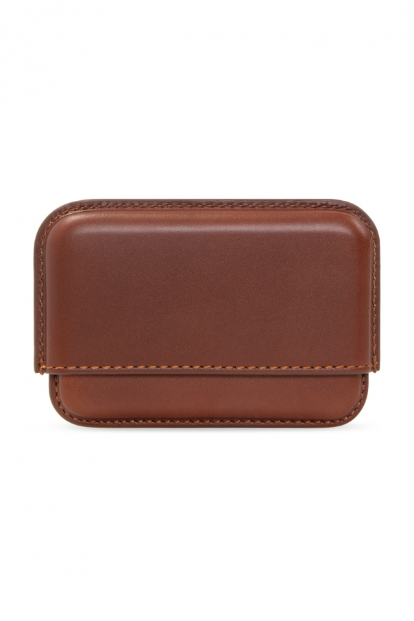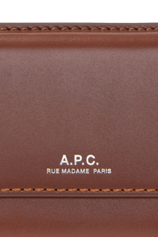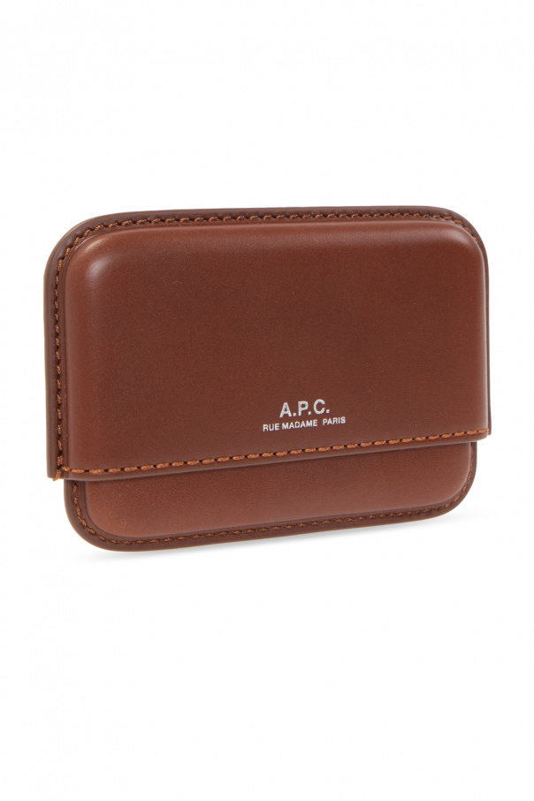 Brown card holder from A.P.C. Crafted from cow leather, this model features an embossed logo pattern in silver-tone and one internal compartment.