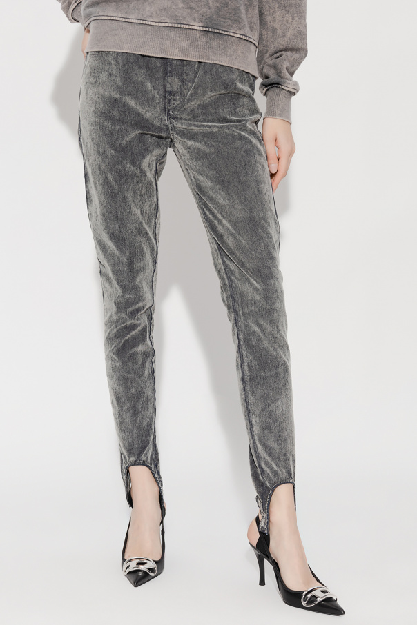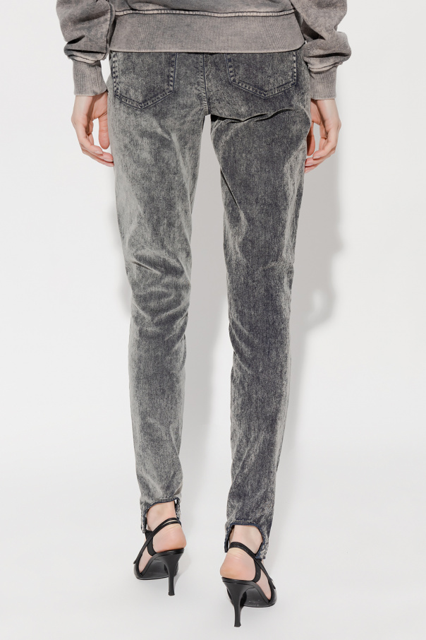 Grey ‘D-SLANDY-G-NE’ jeans from Diesel. Made of cotton, this pair features a zip and button closure, worn effect, five slip pockets, logo patch at the back and elasticated cuffs.