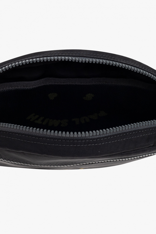 Black and grey belt bag from PS Paul Smith. Fastened with a two-way zipper, this design features a zip pocket accompanied by beige logo embroidery on the front, a half-round handle at the back, an adjustable strap and one internal compartment with a slip pocket.