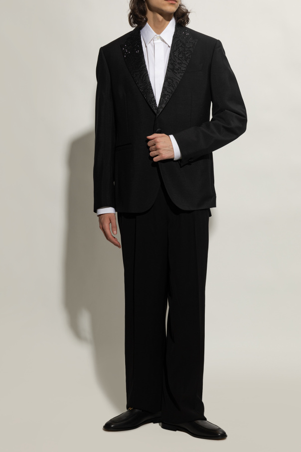 Black ‘La Medusa’ loafers from Versace. Made of leather, this pair features the brand’s signature Medusa head in gold-tone and a brown leather sole.