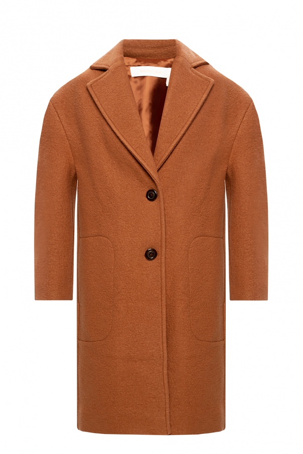 Beige coat with notch lapels from See By Chloé. Crafted from wool, this long sleeve design features button fastening and two front pockets.