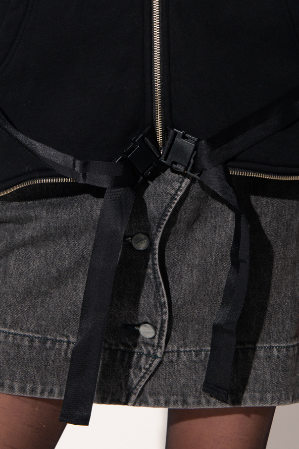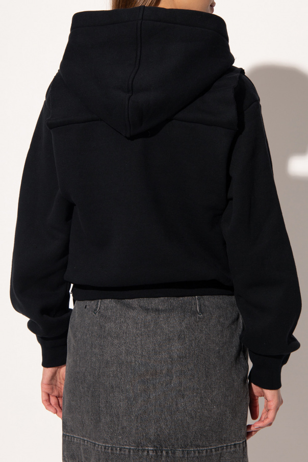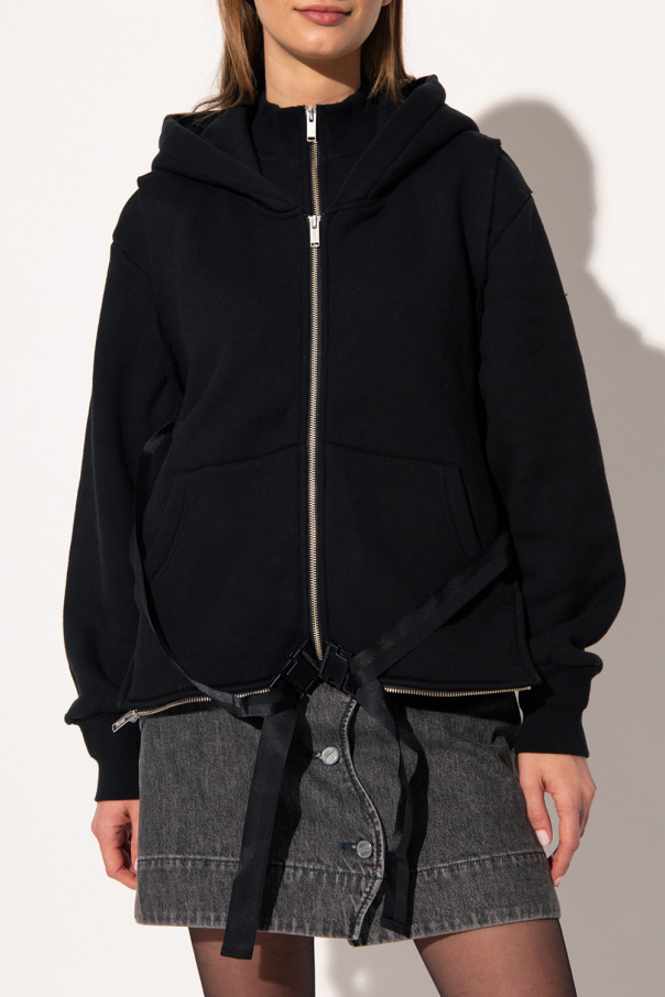 Black hoodie from Undercover. Made of cotton, this style features a zip fastening, two slip pockets, distinctive zippers and snap closures, and long sleeves with elasticated cuffs.