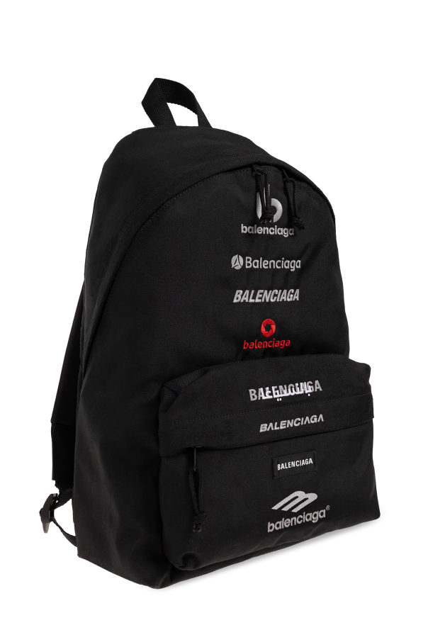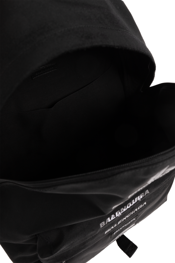 Black backpack from Balenciaga. Fastened with a zip, this model features a logo embroidery, zipped front pocket, half-round handle, adjustable shoulder straps, one internal compartment and black metal hardware.
