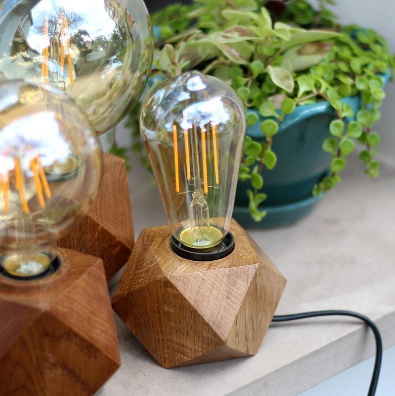 Лампа виготовлена з дерева дуба в стилі лофт.Виріб покрито захисним шаром глянсового лаку.Кожен світильник має неповторну текстуру дерева.На фотографіях представлені 4 світильника, ви можете вибрати той, який вам сподобався або подати заявку на персональне замовлення.У вартість входить лампа Едісона,також звана ретро-лампа або вінтажна лампа розжарювання, являє собою виріб зі скла з легким золотавим покриттям. Такие лампы с поразительным эффектом нити накаливания вновь возвращаются в наши дома, чему можно только порадоваться, ведь зачастую всё новое представляет собой хорошо (и незаслуженно) позабытое старое. Ретро лампы накаливания излучают теплый янтарный свет, вот за это свойство их так любят дизайнеры, ведь крайне важно создать не только красивый интерьер, но и приятное глазу освещение. Винтажные лампы накаливания снова входят в моду, удачно подчеркивая особый стиль самых различных интерьеров – от хай-тека до классики. Лампа Едісона ST64 на сьогоднішній день – це сучасна інтерпретація лампи, розробленої в 1977-му році відомим у всьому світі американським винахідником і підприємцем Томасом Едісоном. Розміри: 1.Велика лампа 9 на 9 см - 800 2.Середня 8 на 7 см - 800 3.Маленька 6 на 6 см (ціна 380 для замовлення перейдіть в магазин і оформіть замовлення конкретно на неї) Комплектація: шнур з перемикачем + лампа Персональний замовлення: Можливо виготовлення в кольорі і інших розмірів.