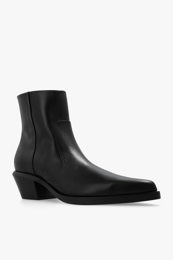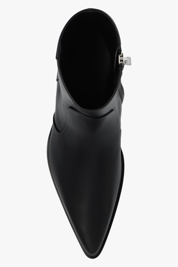 Black ‘Slim Texan’ heeled ankle boots from Off-White. Made of leather, this pair features a side zip, pointed toe and black leather sole.