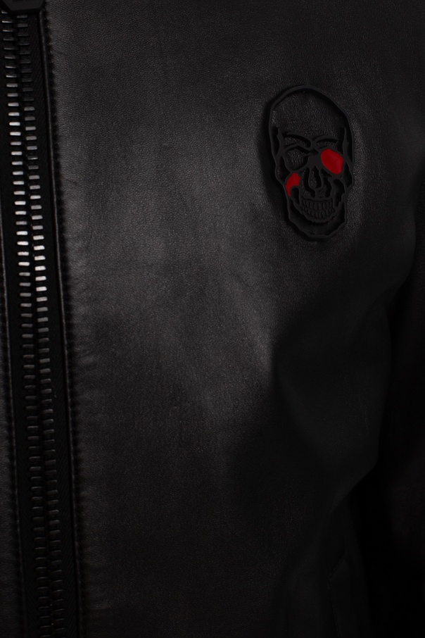 Black and red jacket from Philipp Plein. Made of lamb leather, this item features a zip fastening, the iconic skull detail, two snap pockets and ribbed trims at the hem and cuffs.