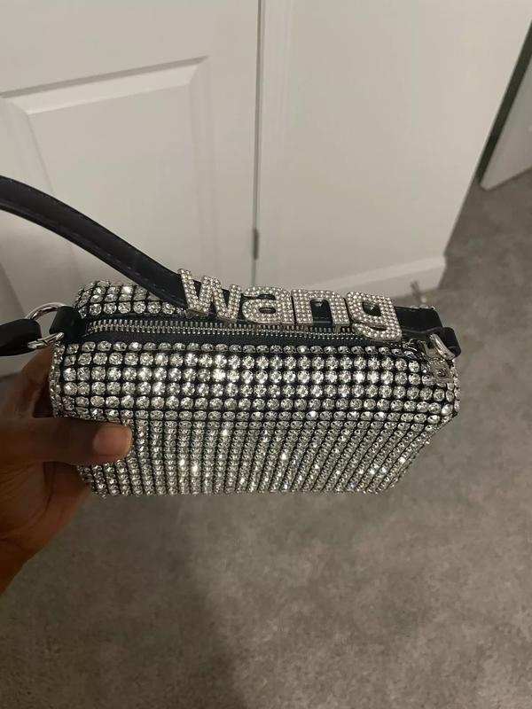 Шикарная сумка люкс качества из страз! В стиле известного бренда Wang невероятный блеск и идеальное качество! Очень эффектная, подчеркнет ваш сияющий образ! Размер 17*10 В комплекте 2 ремешка: 1. Короткий (на сумке) 2. Цепочка. Поверьте, эта сумочка под известный бренд придаст блеск и стиль любому Вашему образу! Из всех вопросов обратитесь. В жизни лучше чем на фото, Вы точно останетесь довольны качеством и выбором! ОГРАНИЧНОЕ количество.