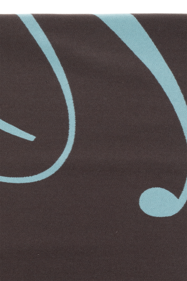 Dark grey and blue scarf from Burberry. Made of a wool and silk blend, this item showcases a logo pattern and fringed edges.
