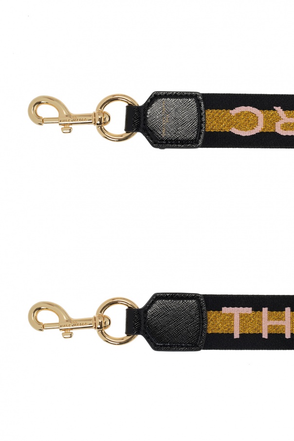 Black bag strap from Marc Jacobs (The). Trimmed with leather, this item is enriched with a logo pattern in gold-tone and pink.