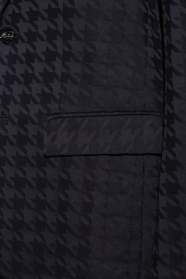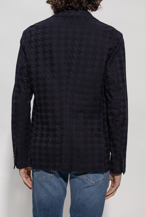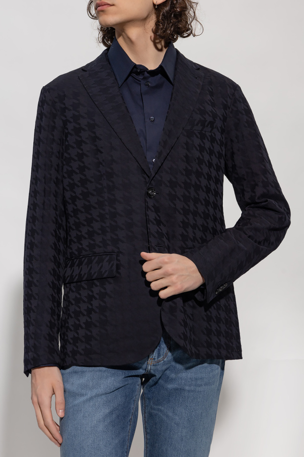 Navy blazer from Emporio Armani. Made of cotton, this design features button fastenings, a geometric pattern, three slip pockets and long sleeves.