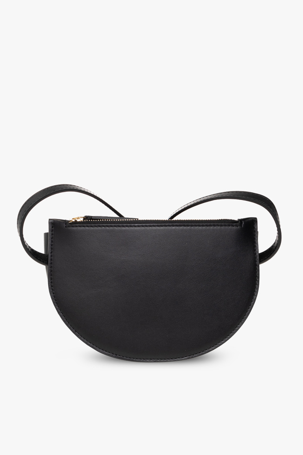Black ‘Anna’ belt bag from Wandler. Crafted from nubuck, this design fastens with a snap and showcases an embossed logo on the front, a back zip pocket, an adjustable strap, gold-tone metal hardware and one internal compartment with a card slot. Can be worn as a shoulder bag.