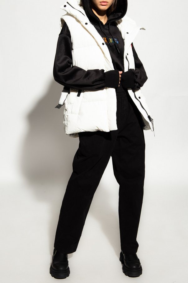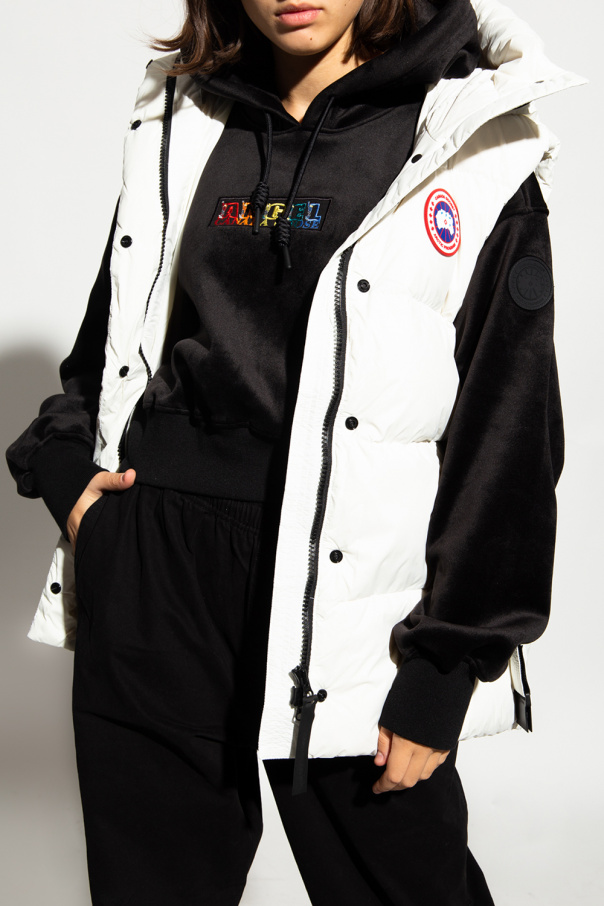 White down vest from Canada Goose. Fastened with a two-way zip and snaps, this garment features a waist belt, logo appliqués, drawstring hood with a zip and two snap-fastened pockets.