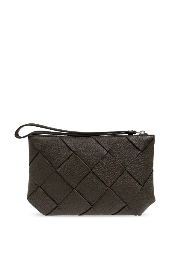 Introducing the Diago Medium by Bottega Veneta, an epitome of luxury and elegance from the High Heel collection. This rectangular handbag, crafted from meticulously woven leather, exudes a sophisticated charm that is bound to make a statement. The bag's exterior is made from premium-quality leather with a distinct, grainy texture, rendered in a deep, captivating green. The exquisite woven pattern not only adds a layer of visual intrigue but also showcases the unparalleled craftsmanship involved in its creation. Designed for both style and convenience, the Diago Medium features a top zipper closure, ensuring easy access to the spacious, light-lined interior. A small interior pocket provides additional organization, while the wrist strap offers effortless portability. Why Choose This Product? Elegant rectangular shape with unique woven leather design High-quality grainy leather in a sophisticated dark green hue Convenient top zipper closure and wrist strap Spacious interior with a light lining and an additional pocket Craftsmanship that epitomizes luxury and attention to detail