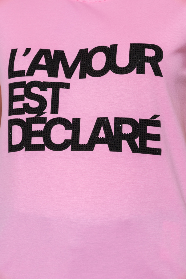 Pink crewneck T-shirt from Zadig & Voltaire. Made from cotton, this style features short sleeves and a black lettering print accentuated with glistening sequins on the front.