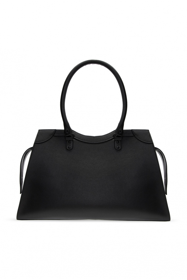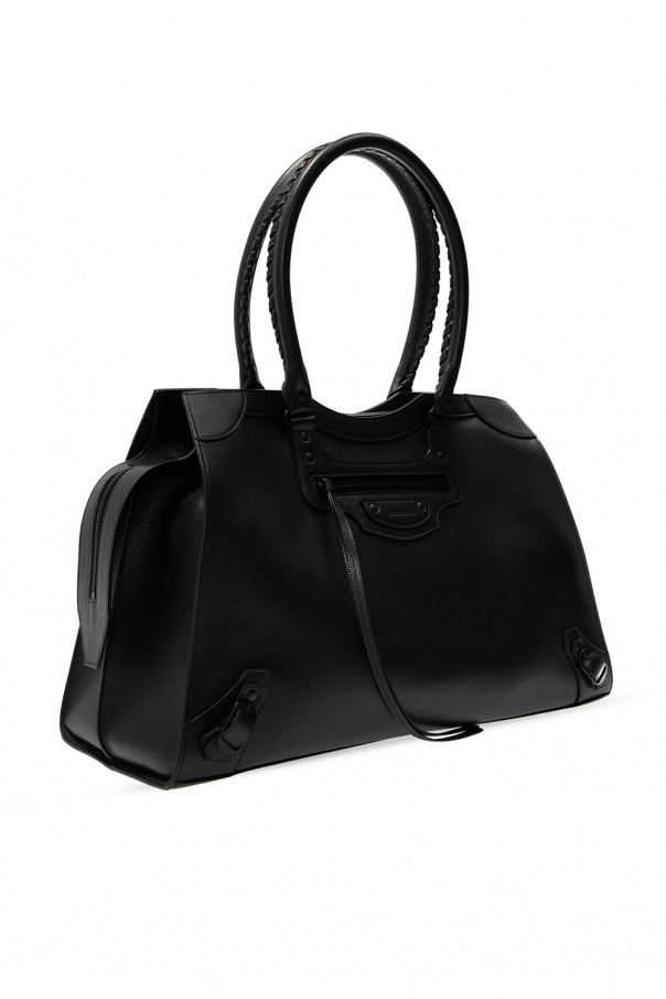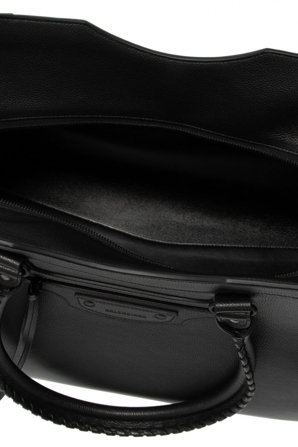 Black ‘Neo Classic City’ duffel bag from Balenciaga. Crafted from calf leather, this design showcases an embossed logo for the brand recognition and employs two-way zip fastening with fringe detailing, an external zipped pocket on the front, two half-round hand-braided handles, silver-tone metal hardware and interior with one compartment and one slip pocket.