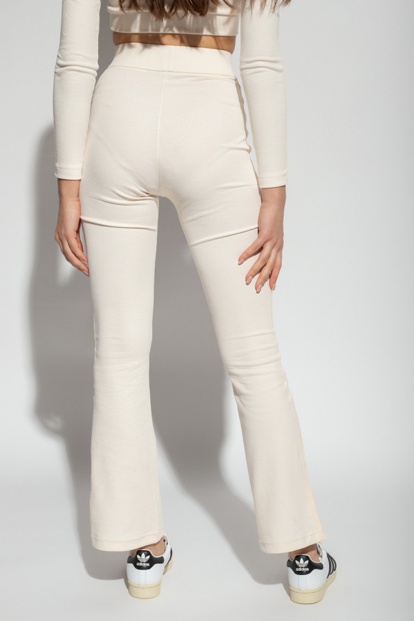 Cream trousers from Adidas Originals, the ‘Retro Luxury’ collection. Crafted from a ribbed, stretchy fabric with flared legs that nods to the item's '70s inspiration, this pair features an elastic waistband, a logo patch on the front and the brand's iconic three stripes in cream down the sides.