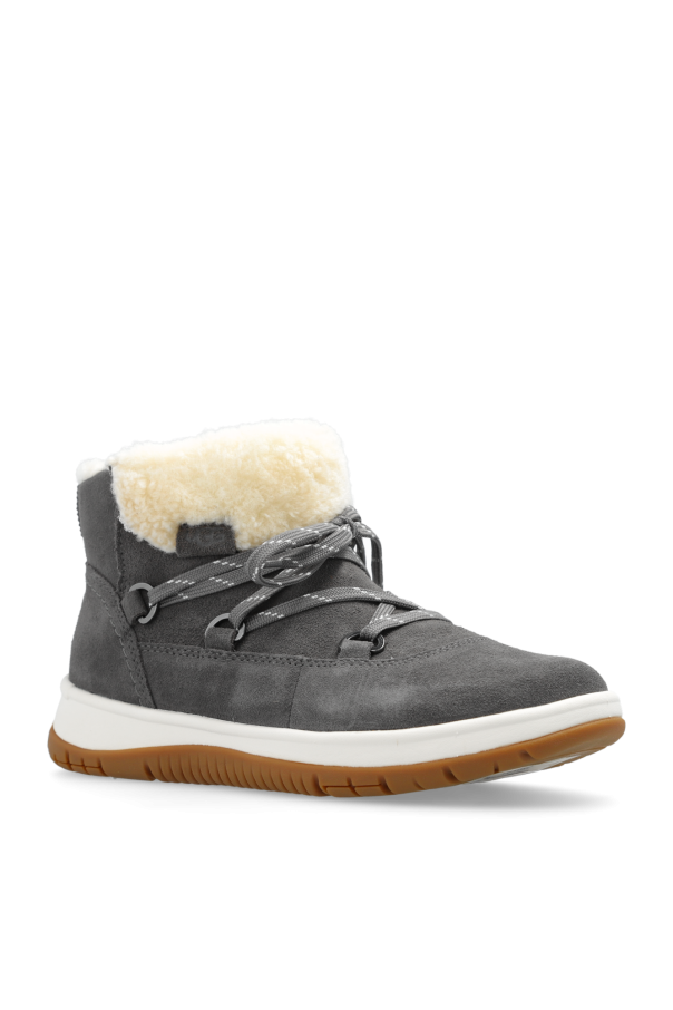 Dark grey ‘Lakesider Heritage’ ankle boots from UGG. Made of water-repellent suede and trimmed with cream UGGplush™, this lace-up model sits on a white and brown Spider rubber sole and showcases the brand's logo and its signature detail with an embroidered logo.