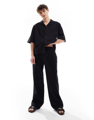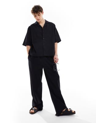 COLLUSION beach linen revere short sleeve shirt and trouser in black