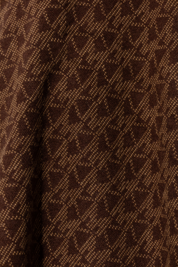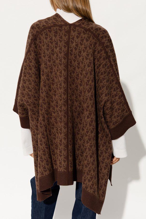 Brown and beige poncho from Michael Michael Kors. Crafted from a merino wool blend, this item showcases a monogram pattern.