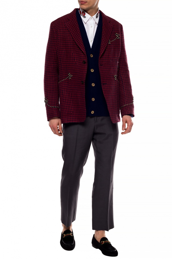 White long-sleeved shirt from Gucci. Made of cotton. Fastened via buttons. Embellished with embroidered red, black and grey ‘Kingsnake’ appliqué.