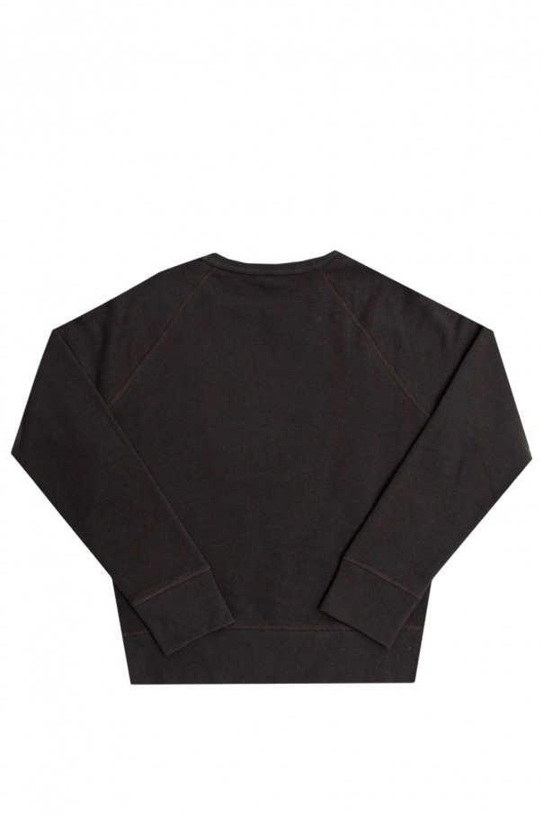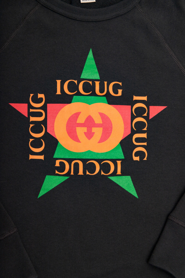 Dark grey crewneck sweatshirt from Gucci Kids. Made of cotton, this design features prints inspired by the ‘80s in orange, red and blue as well as ribbed trims at the neck, hem and cuffs.