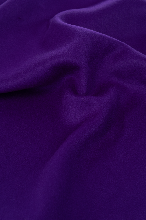Dark purple, reversible scarf from Burberry. Made of cashmere, this design is enriched by fringes. One side is plain, the other is decorated with a check pattern and Equestrian Knight logo patch.