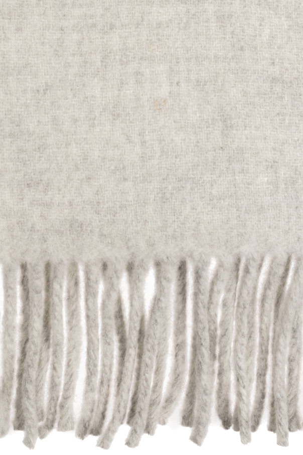 Grey scarf from Jacquemus. Made of virgin wool, this item showcases the brand's logo and fringed edges.
