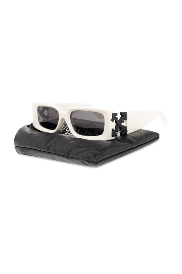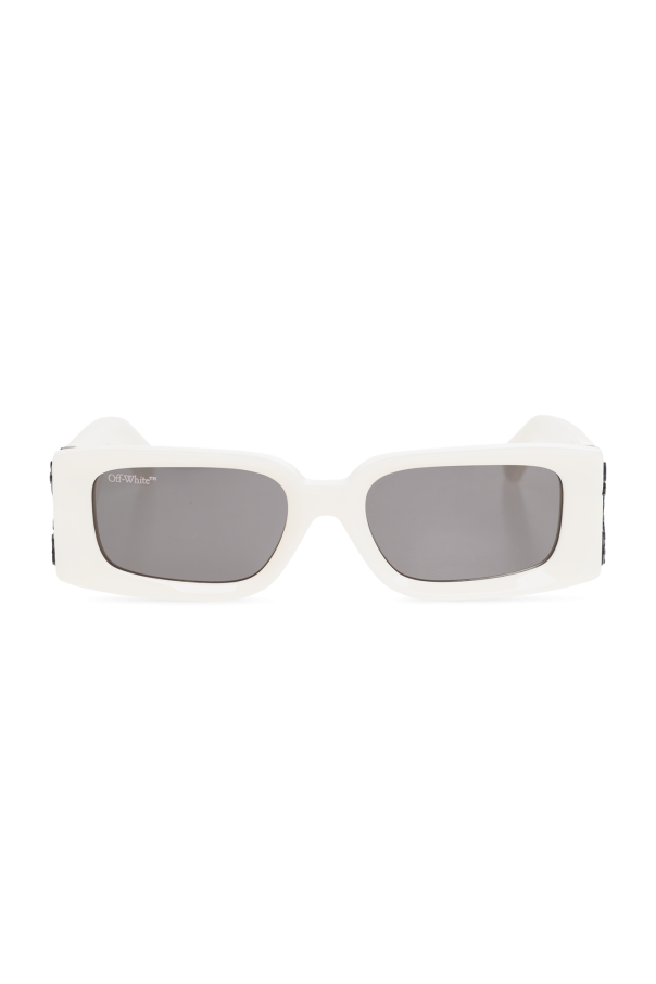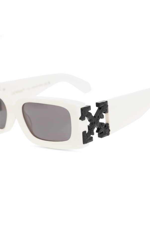 White ‘Roma’ rectangular sunglasses from Off-White. Emblazoned with the brand's signature arrows hardware in black on the temples, this pair features grey lenses with 100% UV protection. Case included.