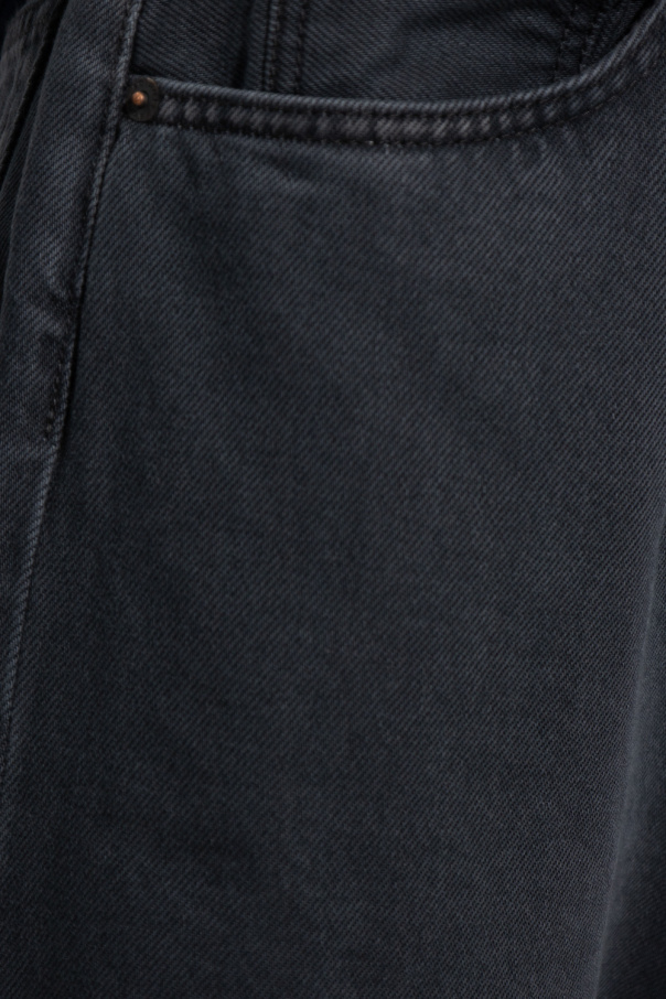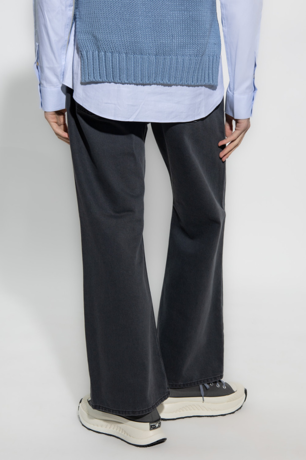Dark grey ‘Acne Studios 2021’ bootcut jeans from Acne Studios. Fastened with a button and zip, this pair features a logo-embossed patch at the back, five slip pockets and loose-fitting legs.