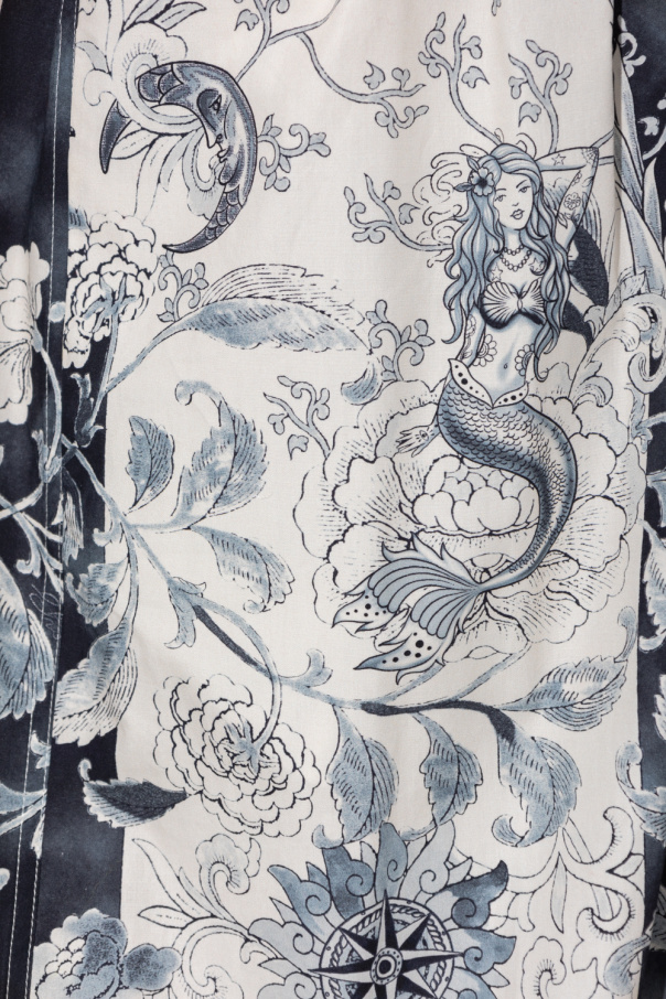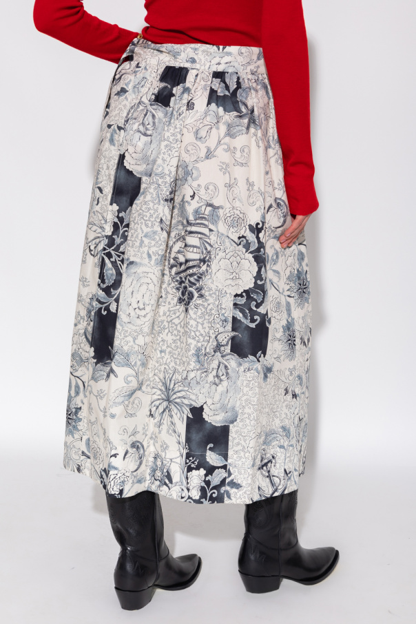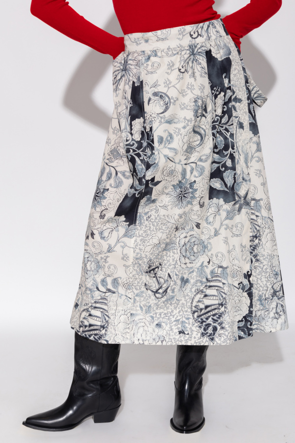 Creme, navy blue and black skirt from Etro. Made from cotton, this style showcases a Paisley pattern inspired by an Old School tattoo. It is complete with a hook & eye fastening and two slip pockets.