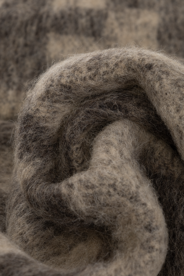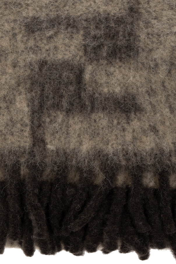 Brown blanket from Fendi. Made of an alpaca wool and virgin wool blend, this item showcases a monogram pattern and fringe edges.